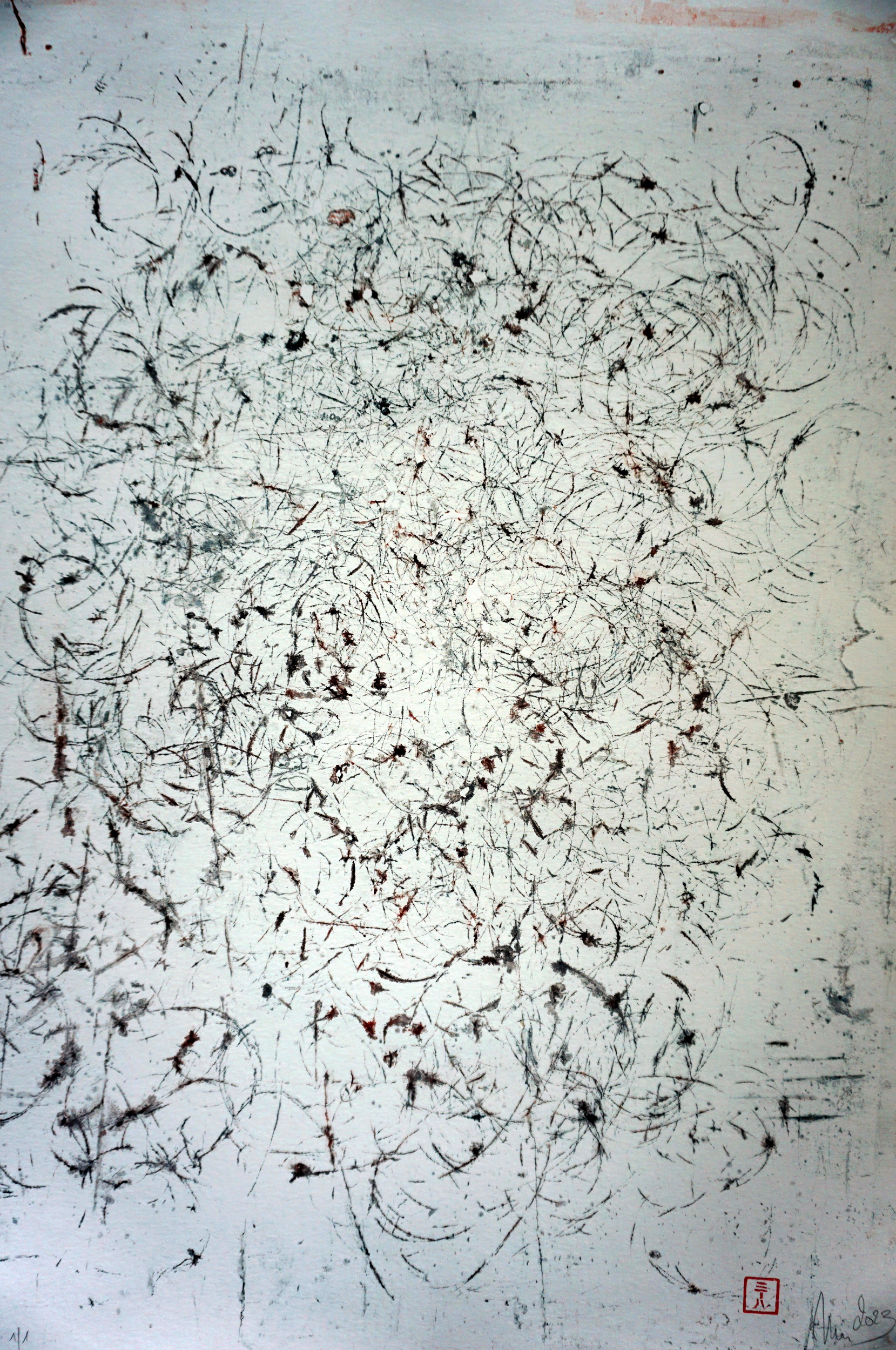 Des fils, en apparence, flottement, apesanteur, ici tout semble vouloir s’échapper .Après avoir pris leur empreinte des centaines de fois, ma matrice s’autodétruit pour ne laisser que les stigmates de leur passage.